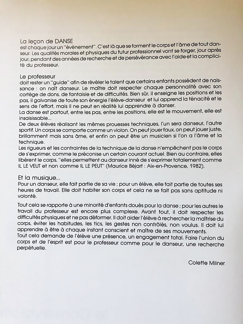 Elle avait écrit " La leçon de DANSE", avec le mot Danse en majuscules. La danse était toute sa vie.