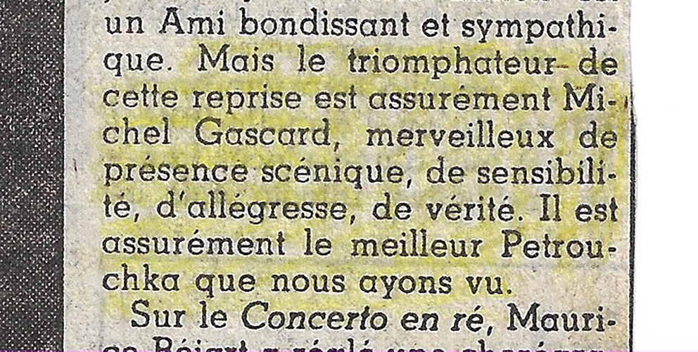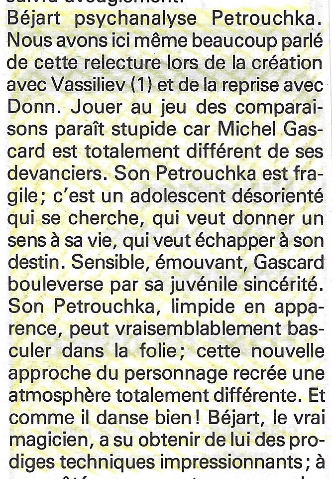 Je sais aujourd’hui que Petrouchka a été le ballet de Maurice Béjart le plus important dans mon évolution artistique et technique.