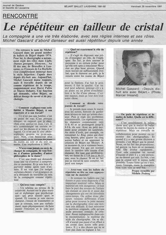 L'interview de ce journaliste résume tout à fait ce que cette fonction a pu représenter pour moi à ce moment de ma carrière, commencée à l'âge de 17 ans en 1974 à Bruxelles au Ballet du XXème siècle.